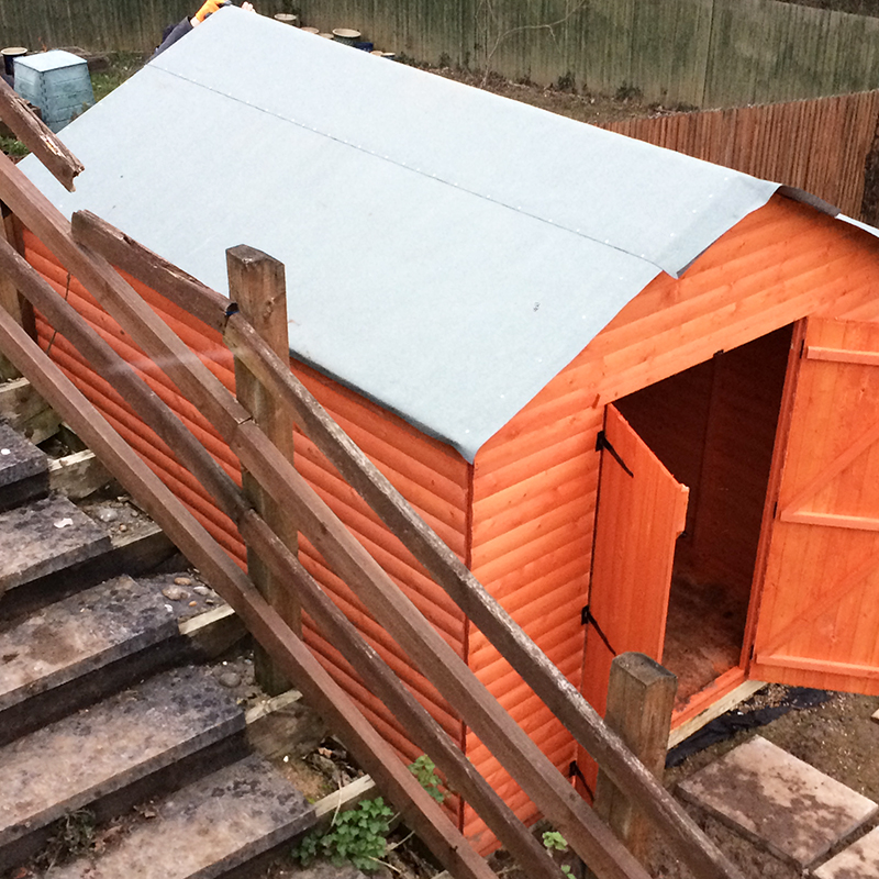 Once Mark had his plastic base, aggregate, pea shingle and timber planks he began installing his base and shed.