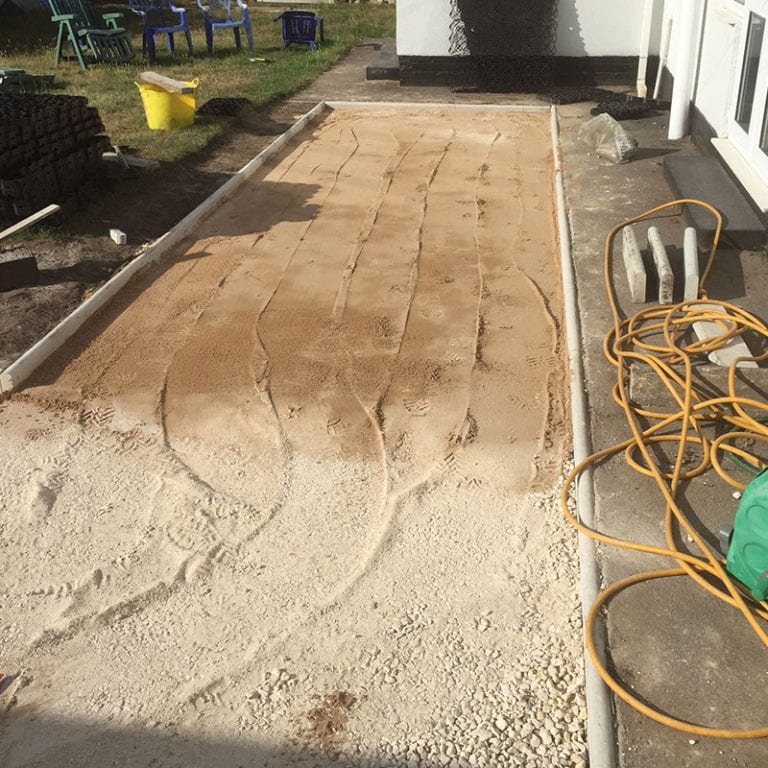 Once his X-Grid® had arrived via pallet, Andrew began his installation as soon as he could. As well as the grids, he had also purchased hardcore, concrete borders and a red like angular gravel.