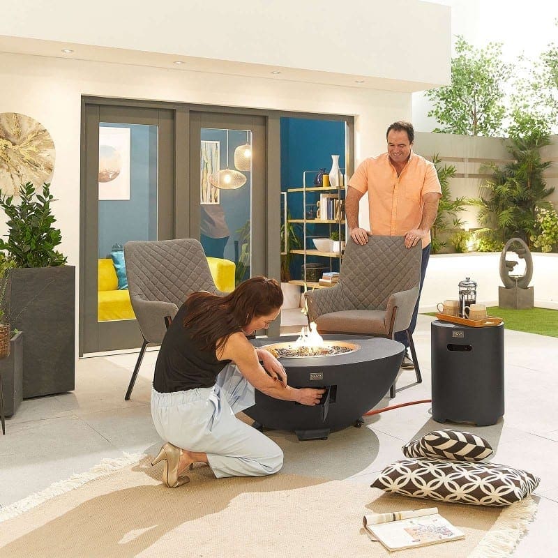 After much research online, Mr Guly came across The Garden Range and began browsing the superb range of outdoor heating solutions before discovering the dark grey Saturn Round Gas Fire Pit.