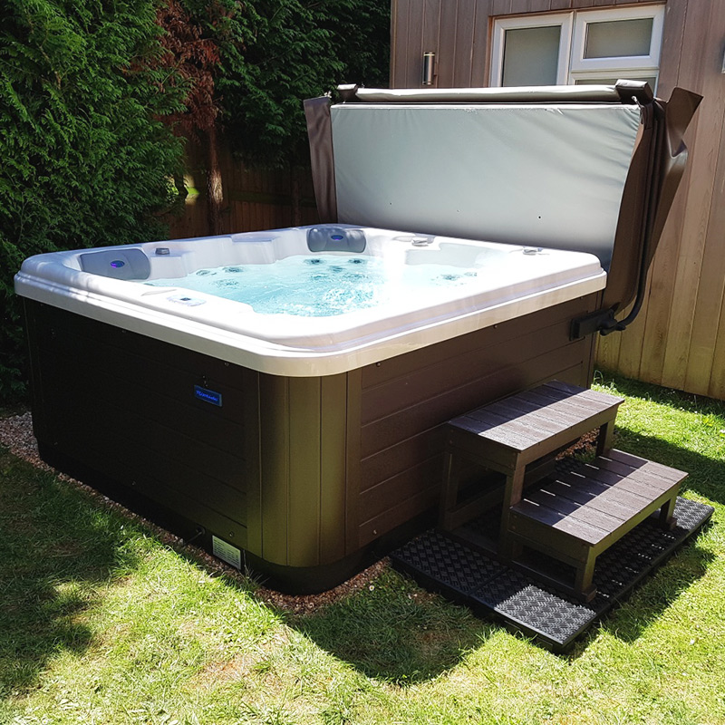 Dave decided to search for the internet to find a suitable foundation for his hot tub. After very little searching he came across our website and our fully recycled plastic bases which he began reading up on. After finding out that our bases are made from 100% recycled plastic waste, are easy to assemble and install, can hold up to 420 tonnes per sqm and are competitively priced he ordered a 7ft x 7ft Hot Tub Base along with 8 Non-Slip Rubber Tiles the same day!