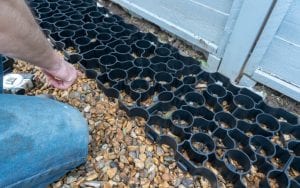 Next, fill the entire area with a suitable angular gravel or aggregate up to 20mm. By filling with gravel, it helps to create an even stronger surface to place your shed onto. Your shed base is 40mm deep and requires around 8kgs of gravel or aggregate to fill each individual panel. (Photos 11, 12 & 13)