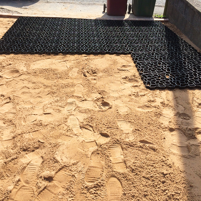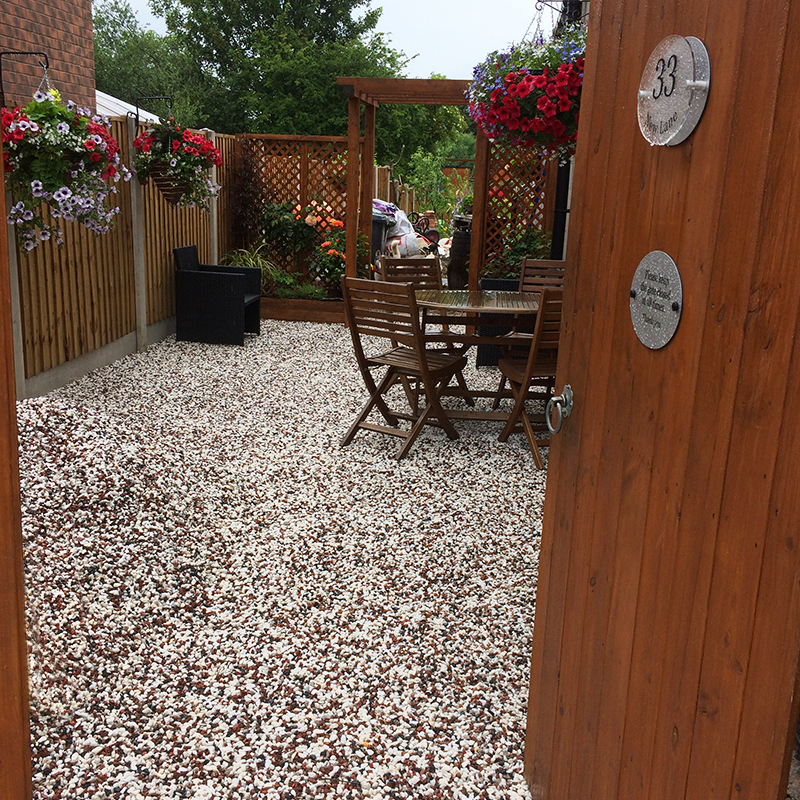 What would have taken hours and hours to lay and then an extra week to cure in concrete took no longer than a day to complete and could be walked on instantly. With all of the X-Grid laid they filled everywhere with 10mm decorative gravel (red black and white gravel). Tanya told us they had a number of people walking past or who lived locally asking about our X-Grid system and how it worked as they were impressed by the look of their installation.
