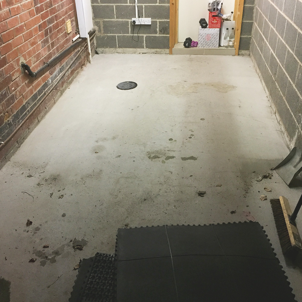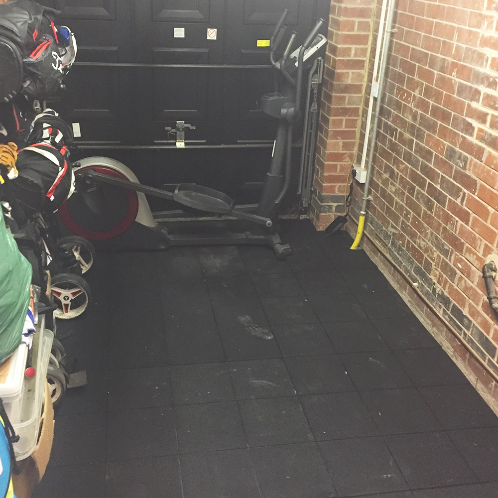 This case study comes from Steve who was looking to change his garage from a storage area into a spacious workout area where he could put his exercise bike and also have room for weight and aerobic training. However to do so a suitable flooring was needed as weights cannot be dropped straight onto concrete and it isn’t good (or comfy) doing sit ups/push ups on a rock hard floor! Read on to see what flooring Steve decided to use