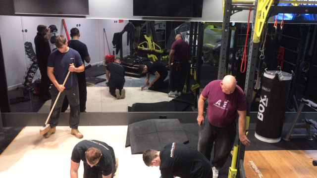 They repeated this process until the all 36 tiles had been installed in the correct place and the gym equipment back in their original place. A simple yet effective installation from Justin and the team!