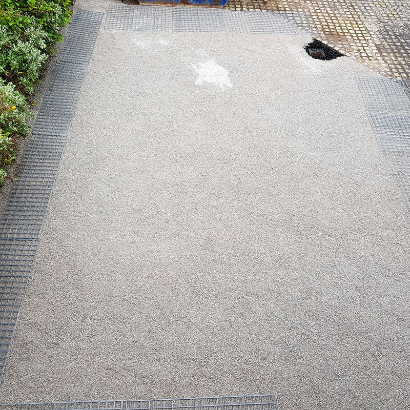 Finally, with the X-Grid now fully installed, all that was left to do was to fill the area with his chosen gravel which he’d had delivered to his home in bulk bags. We estimate that around 8kg of gravel is required to fill 1 panel of X-Grid, so from that you can roughly work out how much you will need to fill your area.